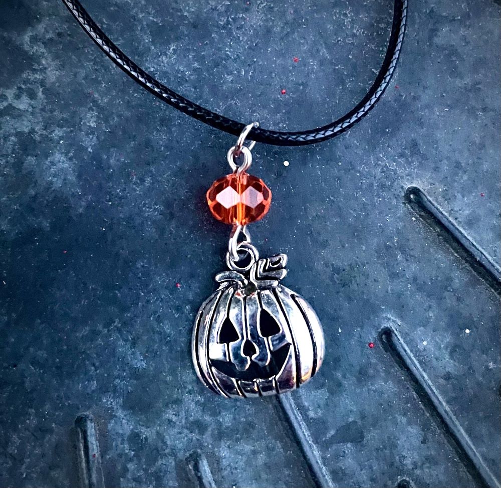 Autumn Gord Necklace – Orange Czech Crystal & Pumpkin Charm