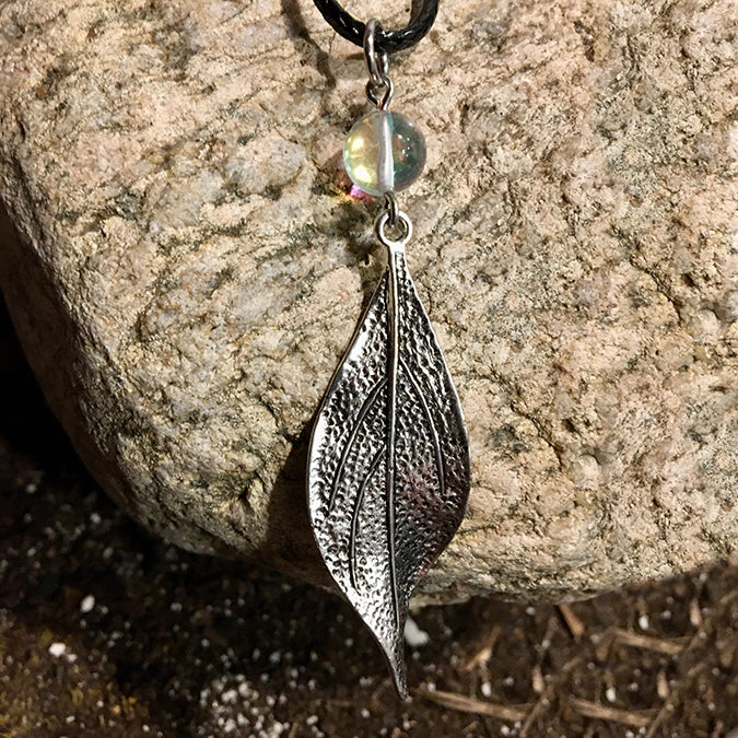 Dew Drop (Rainbow Quartz) with Leaf Necklace