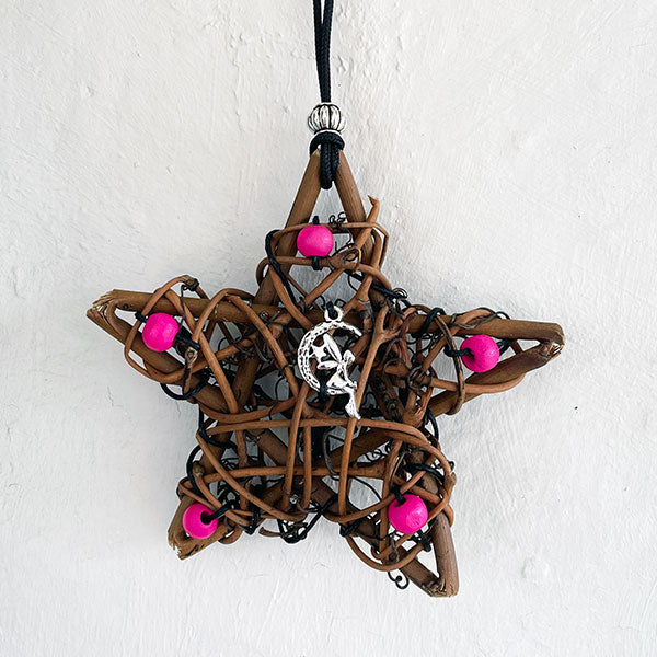 Created with a Rattan Star, Wood Beads and Pewter Fairy.