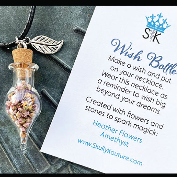 Heather Flower and Amethyst Wish Bottle Necklace