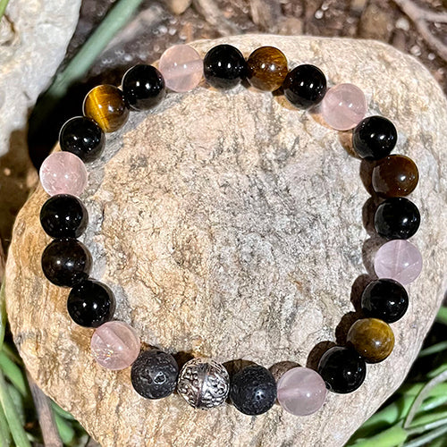 Onyx, Rose Quartz, Tiger's Eye Bead Bracelet