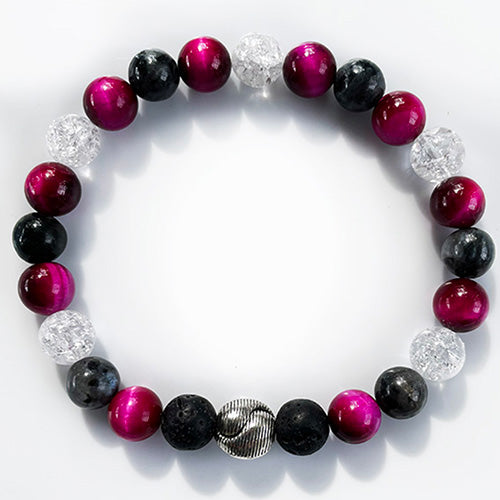 Materials: Norweigan Moonstone, Crackle Quartz, Tiger's Eye, Lava, Pewter Spacer, Stretchy Cord