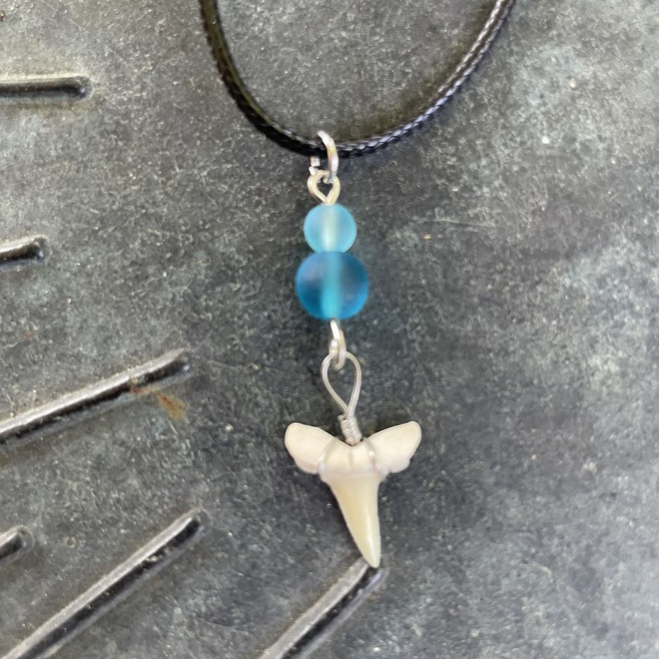 Materials: Shark Teeth, Sea Glass, Wire, Adjustable Cord