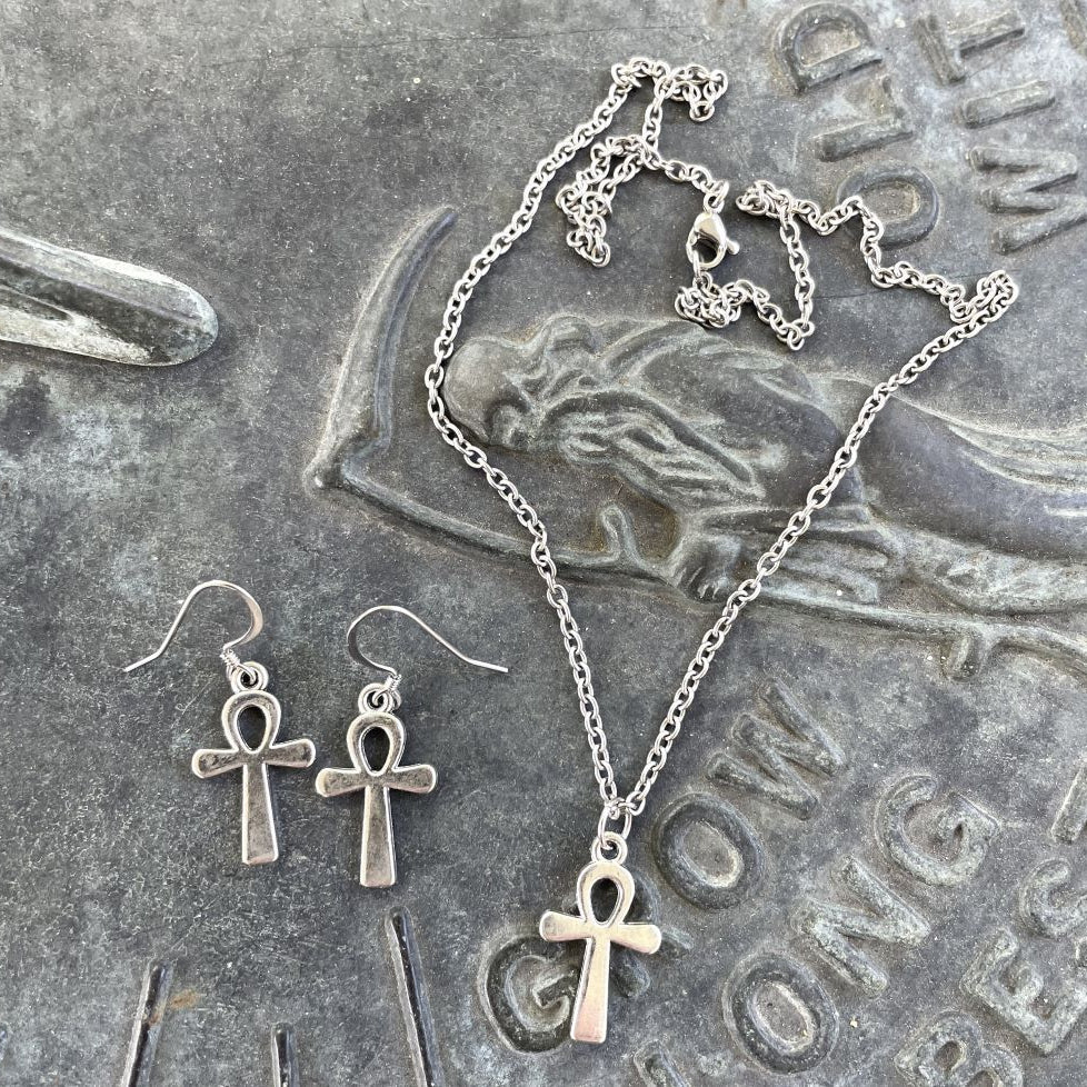 The ankh is an ancient Egyptian symbol shaped like a cross with a loop on top, representing life, love, and eternal energy. In Egyptian folklore, it was believed to unlock the gates to the afterlife, and gods were often shown gifting it to pharaohs as a promise of immortality. In modern lore—especially in vampire mythology—the ankh is sometimes seen as a talisman for eternal life, worn by those who walk between the worlds of the living and the undead. Wearing an ankh is thought to invite protection, vitality, and a link to ancient, otherworldly power.